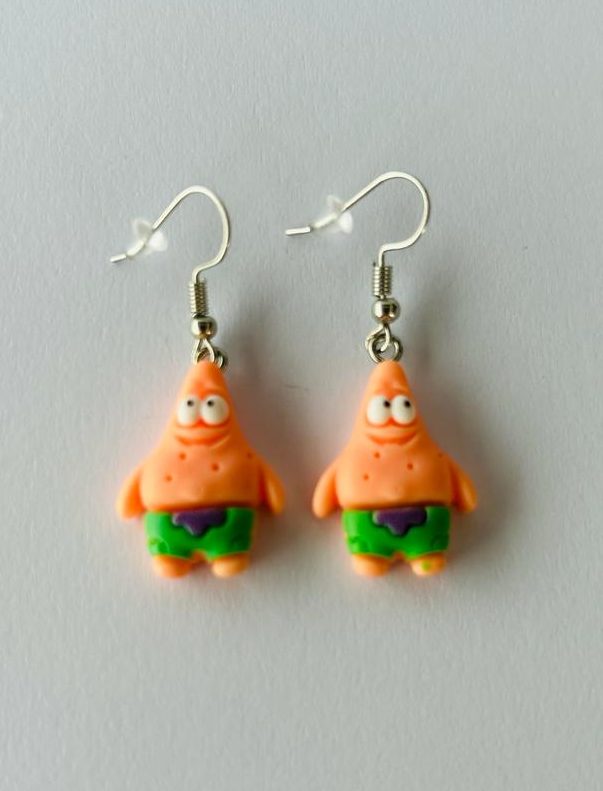Par de brinco personagem Patrick, pingente feito em resina, acompanha tarrachinha de silicone.